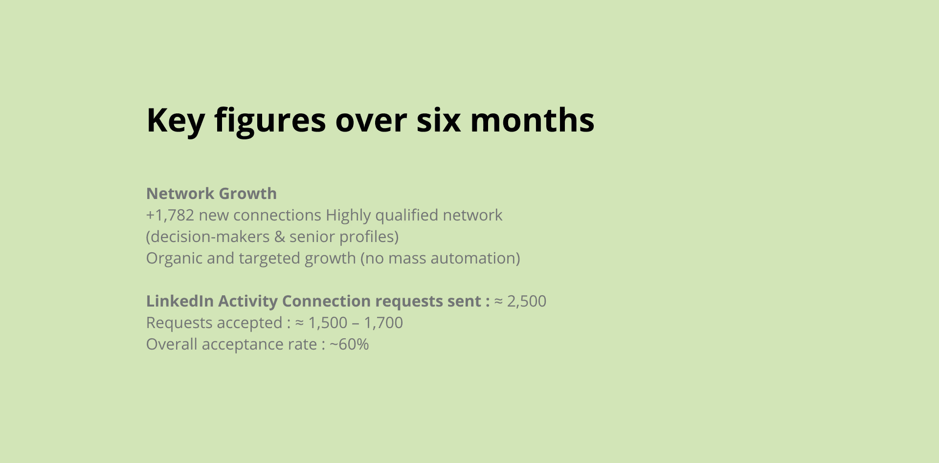 A decision-maker network built from scratch, manually, surgically, sustainably. No mass automation. Just the right people, reached the right way.